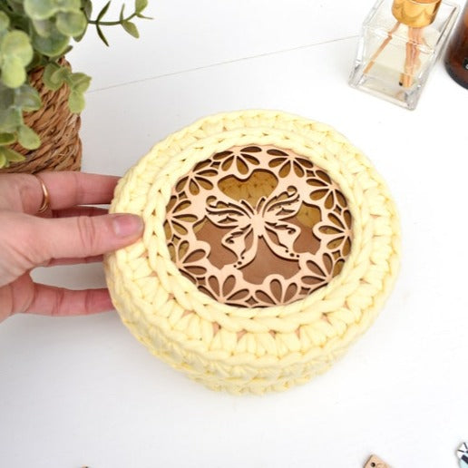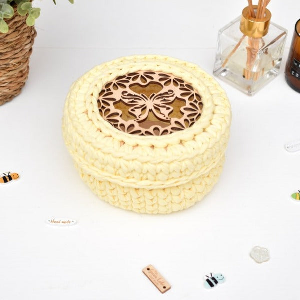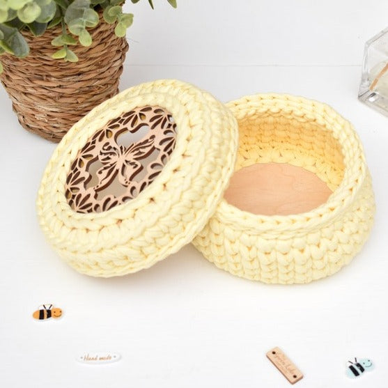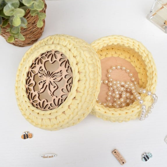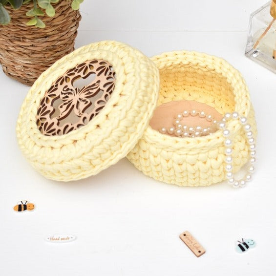 Small hand crocheted basket with lid- Perfect for jewellery, cosmetics and other small bits 'n' bobs!