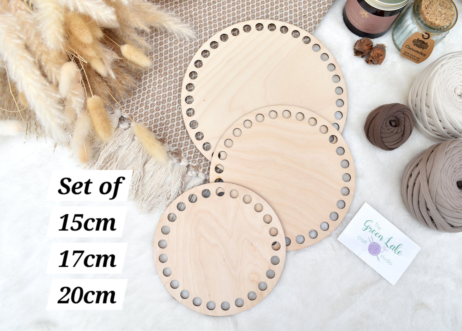 Circular wooden bases with 10mm holes for crochet, coiled or Macrame basket