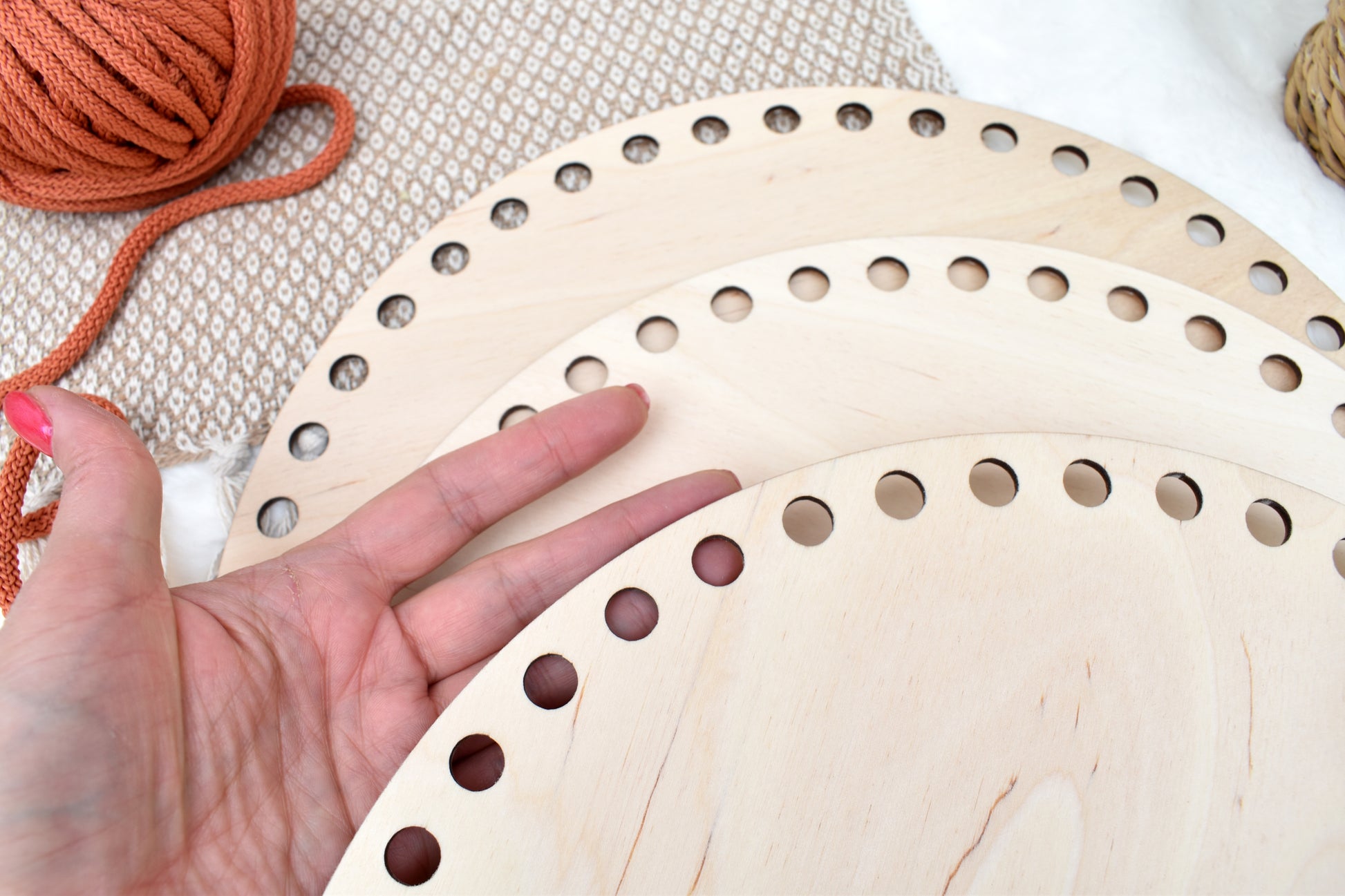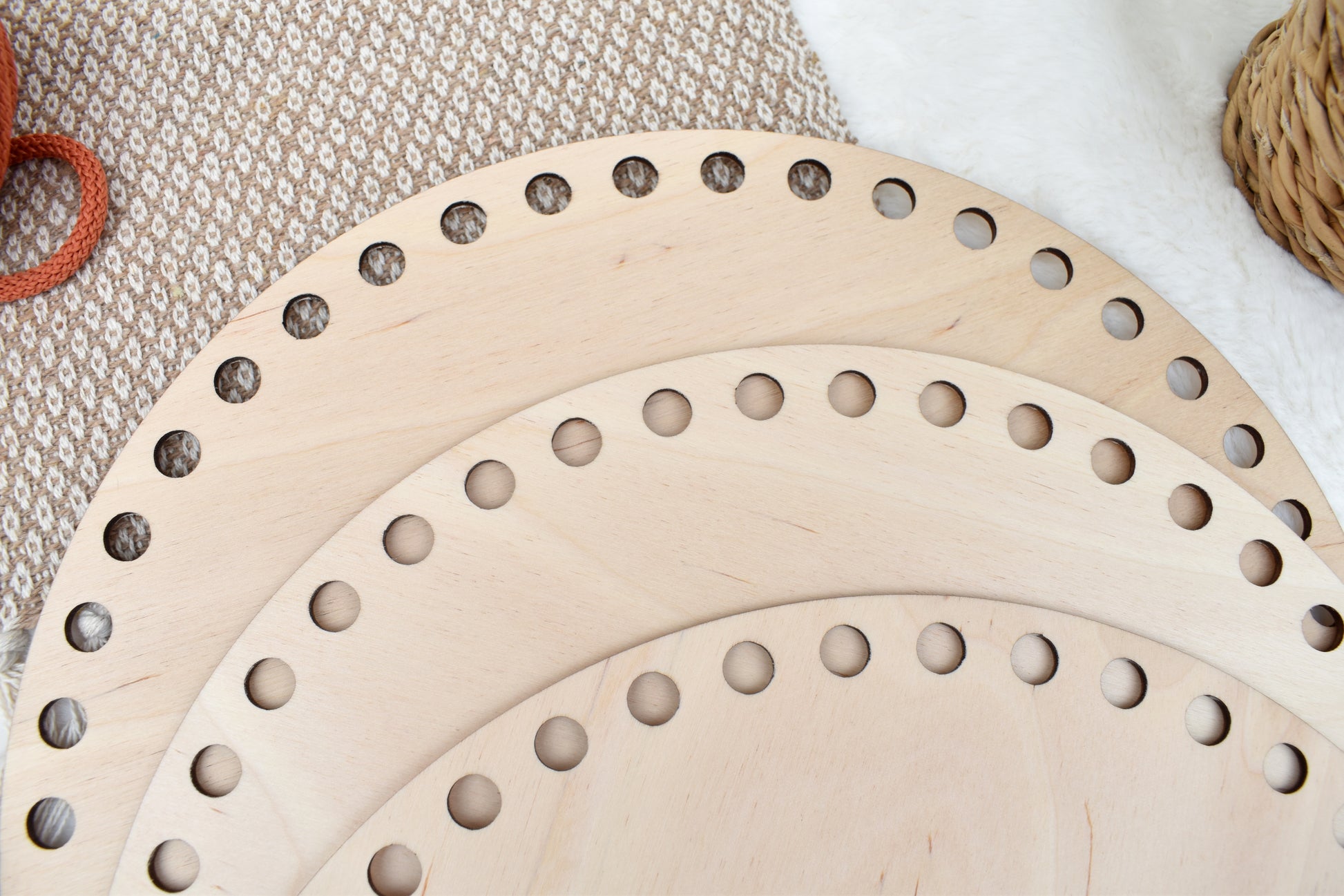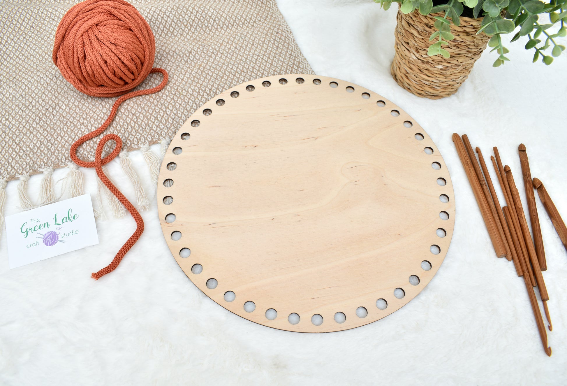 Circular wooden base 30 cm / 11.81 inch with 10mm holes for crochet, coiled or Macrame basket