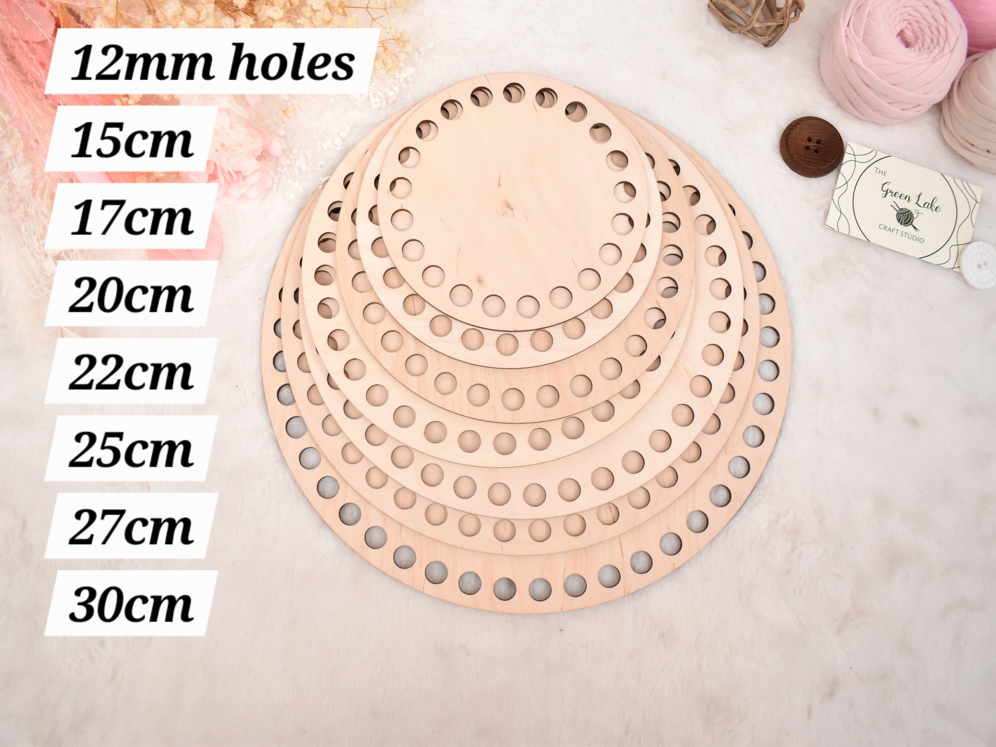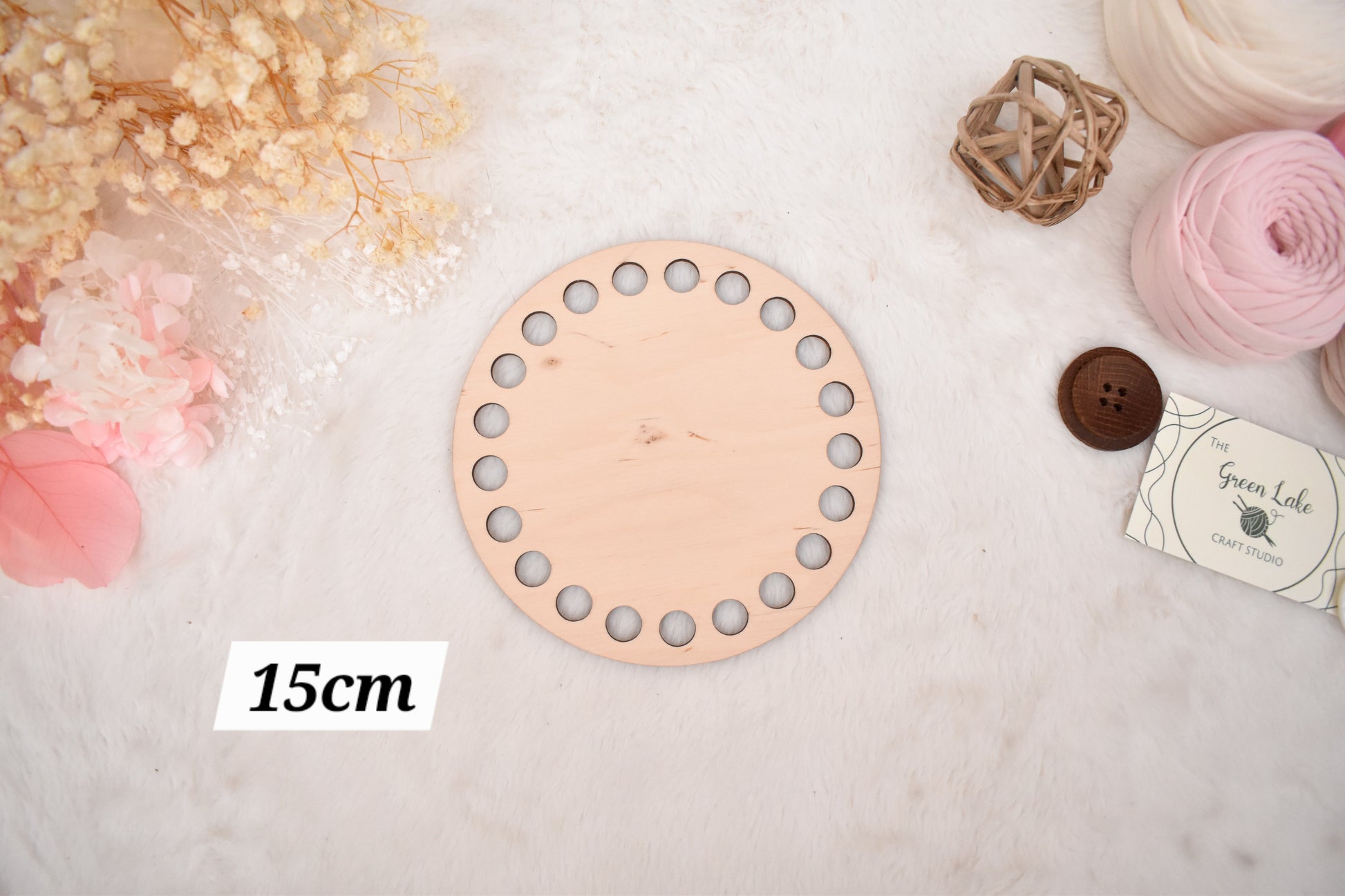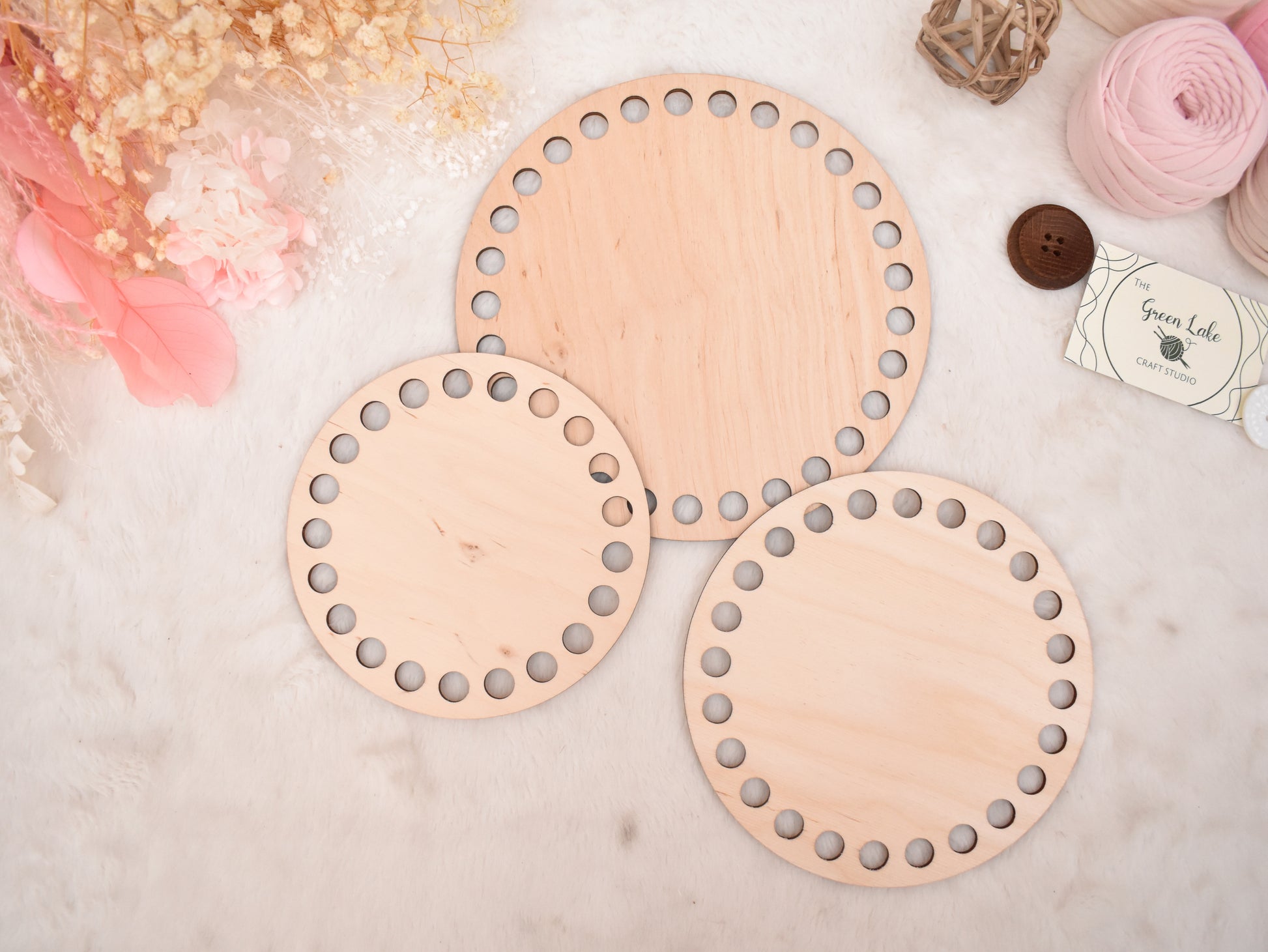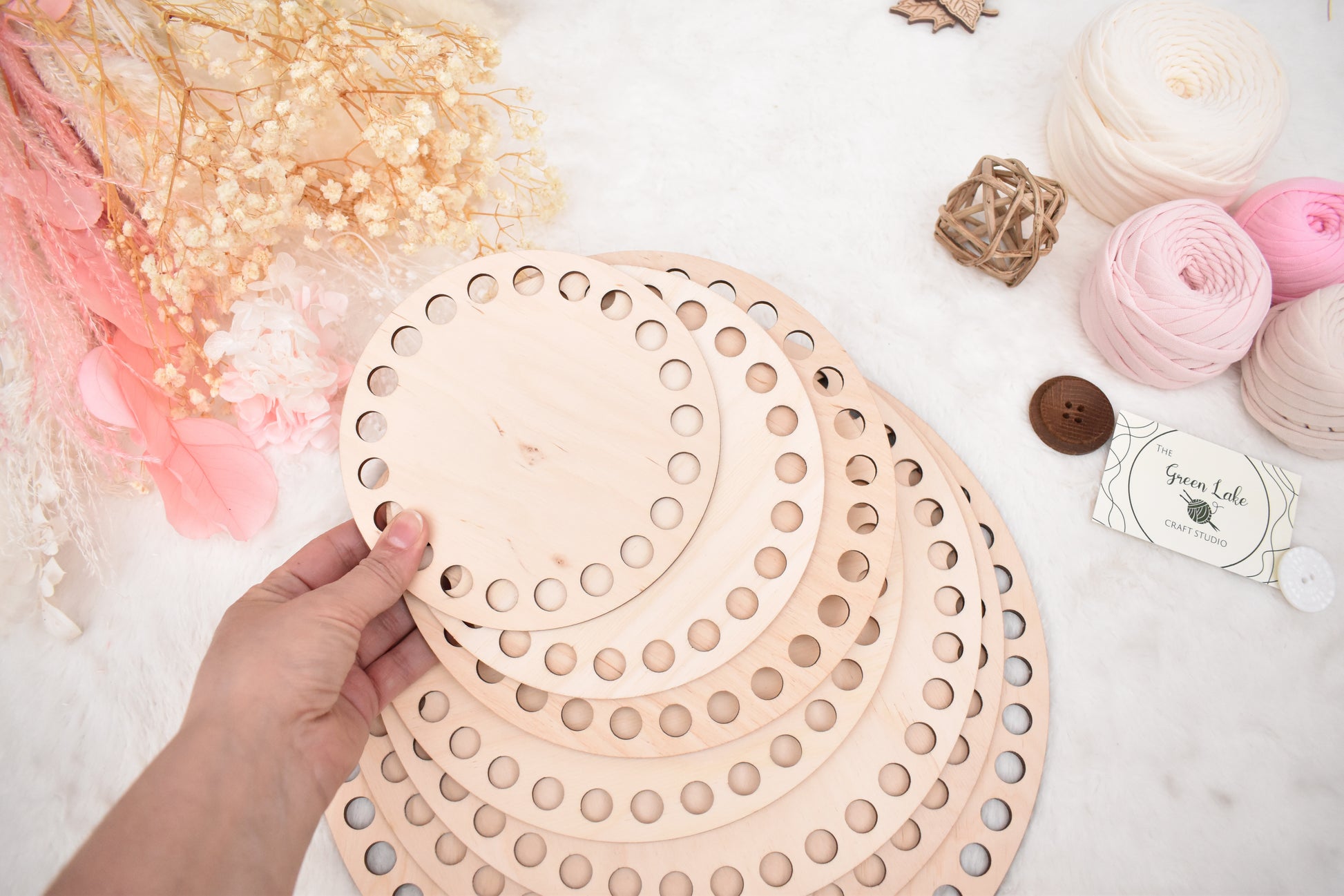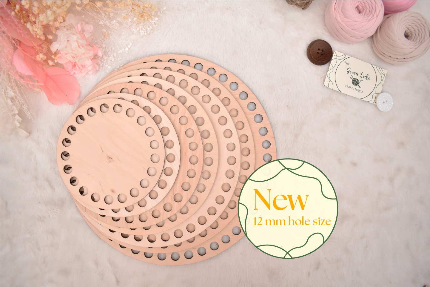 Circular wooden bases with 12mm holes for crochet, coiled or Macrame basket
