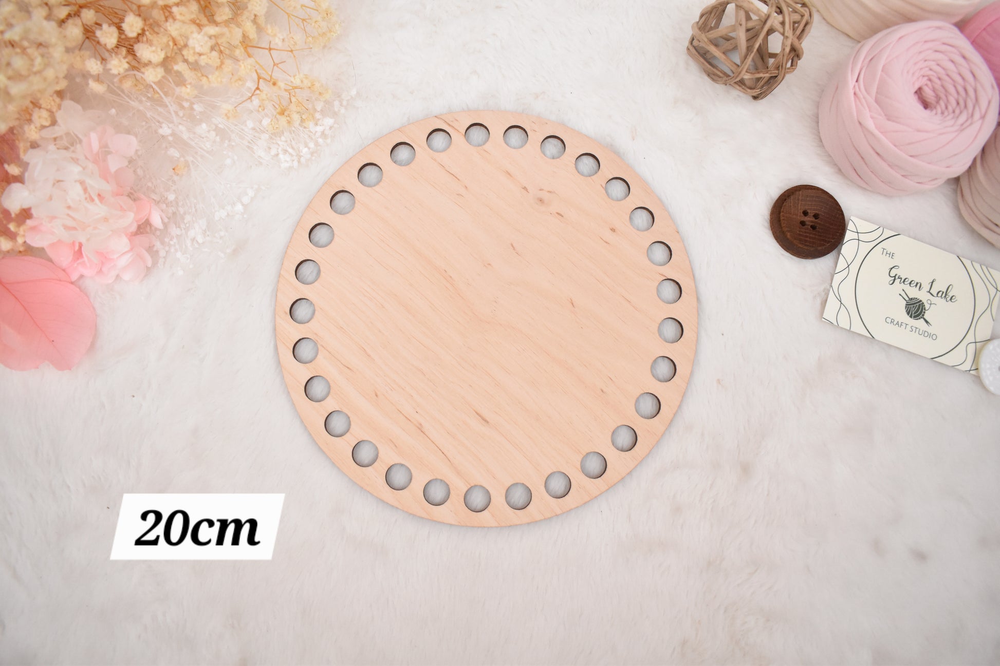 Circular wooden bases for crochet baskets in variety of sizes. These bases are great for using the thicker yarn (9-11mm tshirt yarn) or cord (9mm).