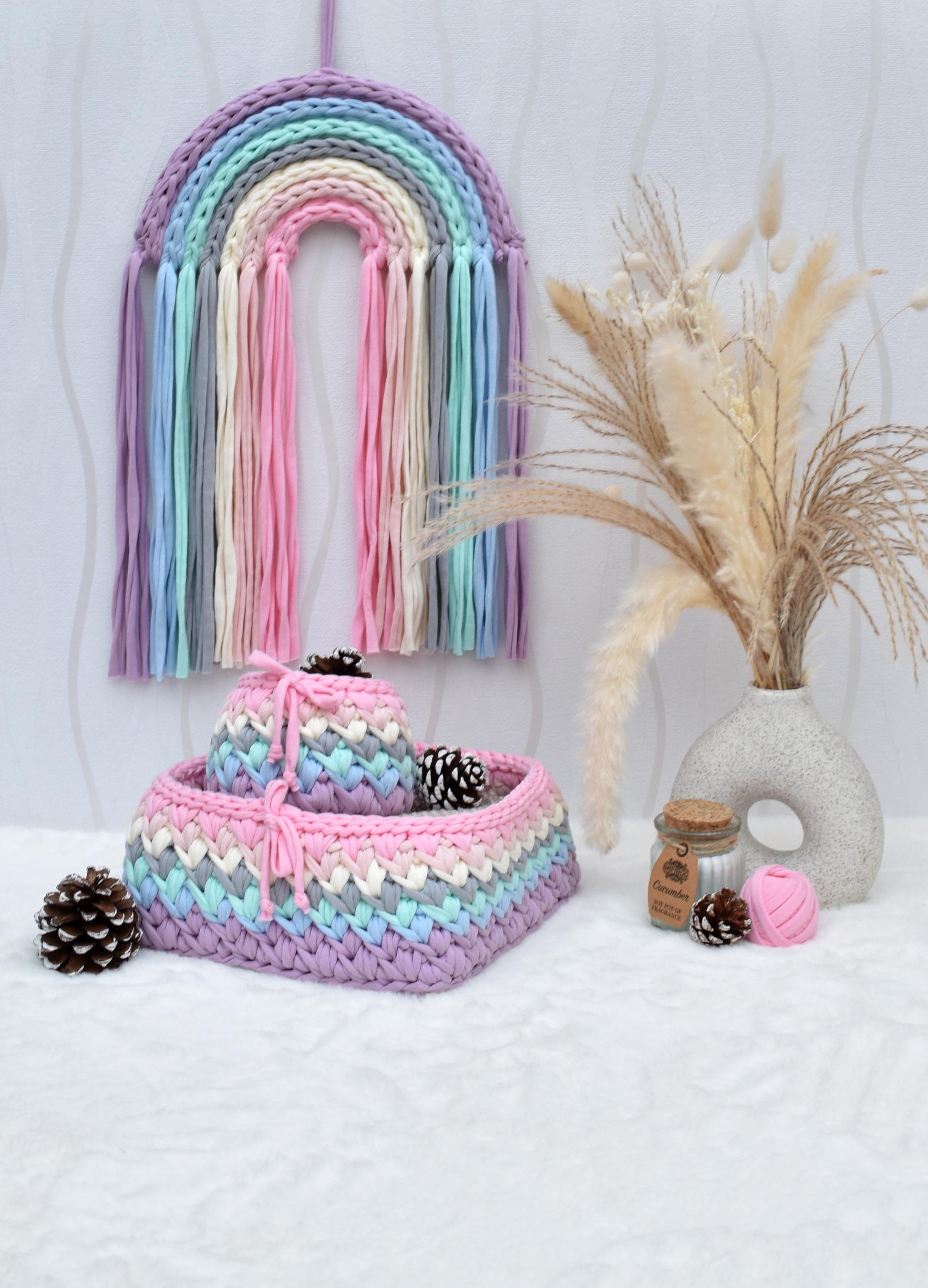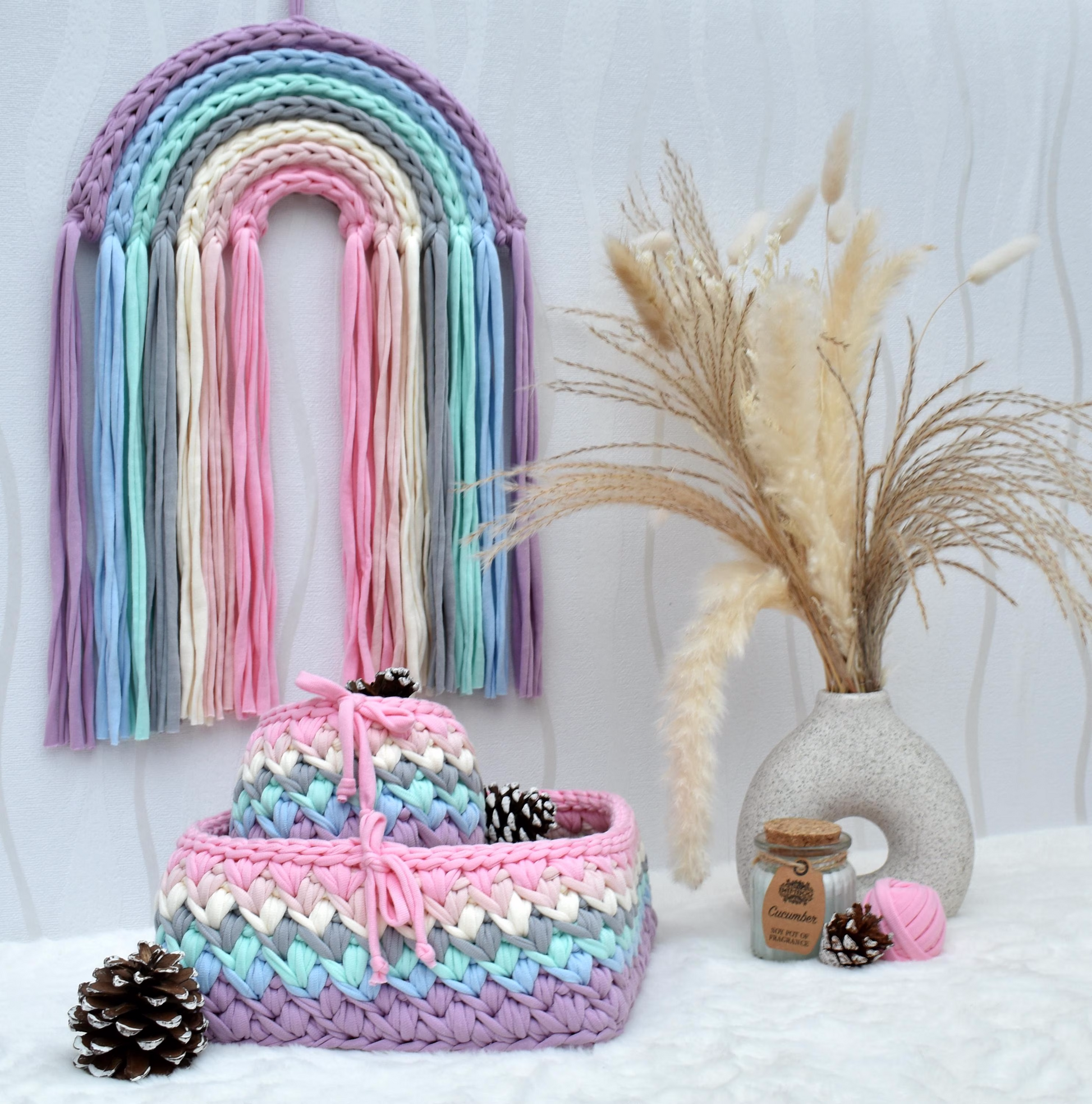Transform your little oneâs nursery into a dreamy haven with our hand-crocheted Pastel Rainbow Collection!