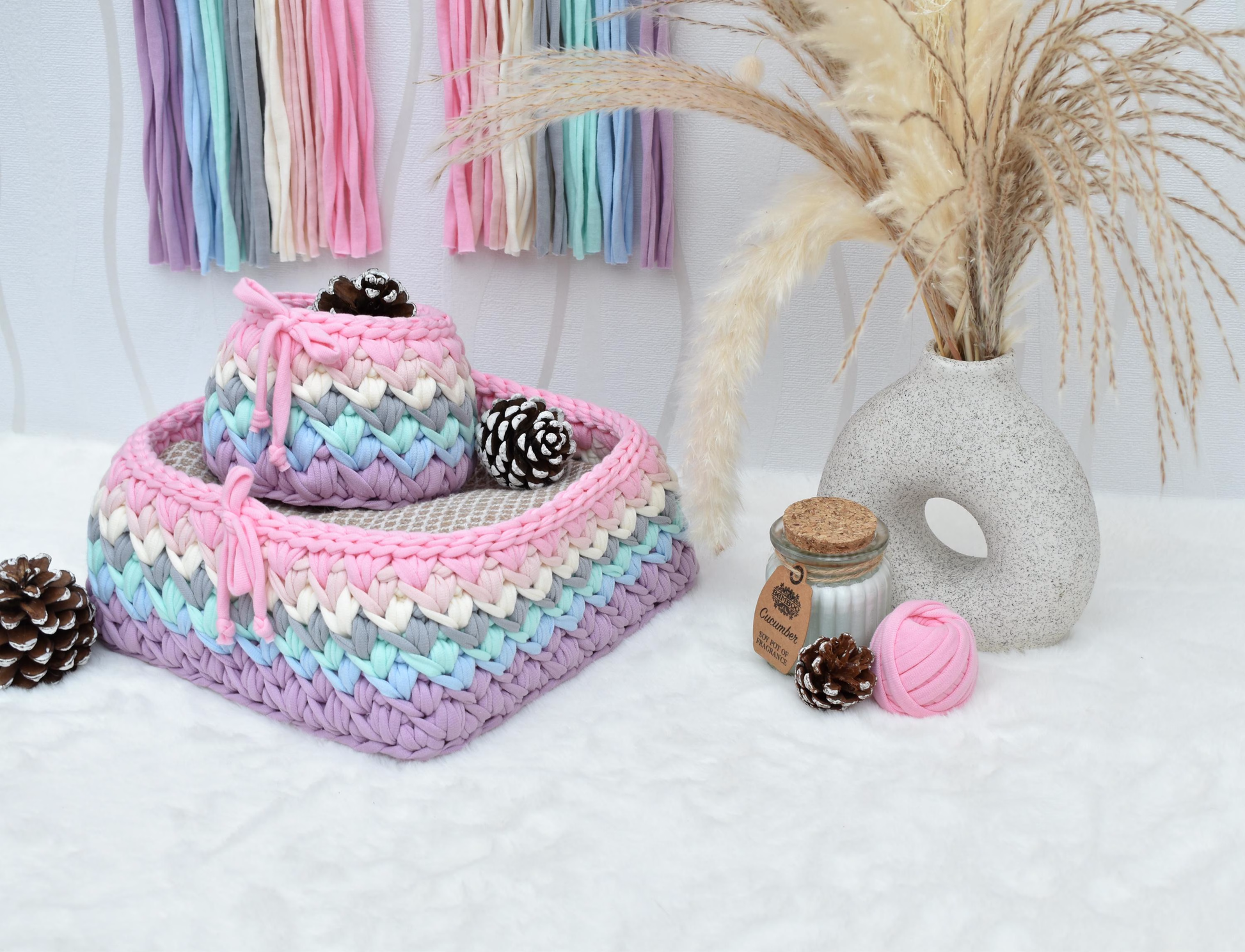 A set of 2 beautifully crocheted baskets â perfect for storing baby essentials, toys, or keeping your space organized.