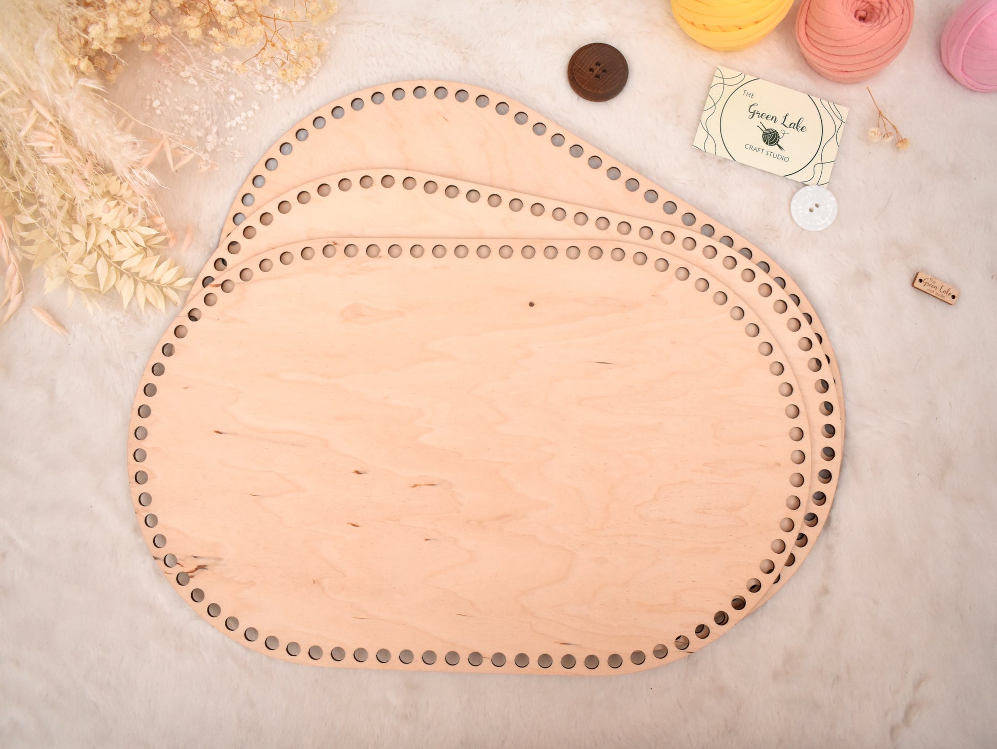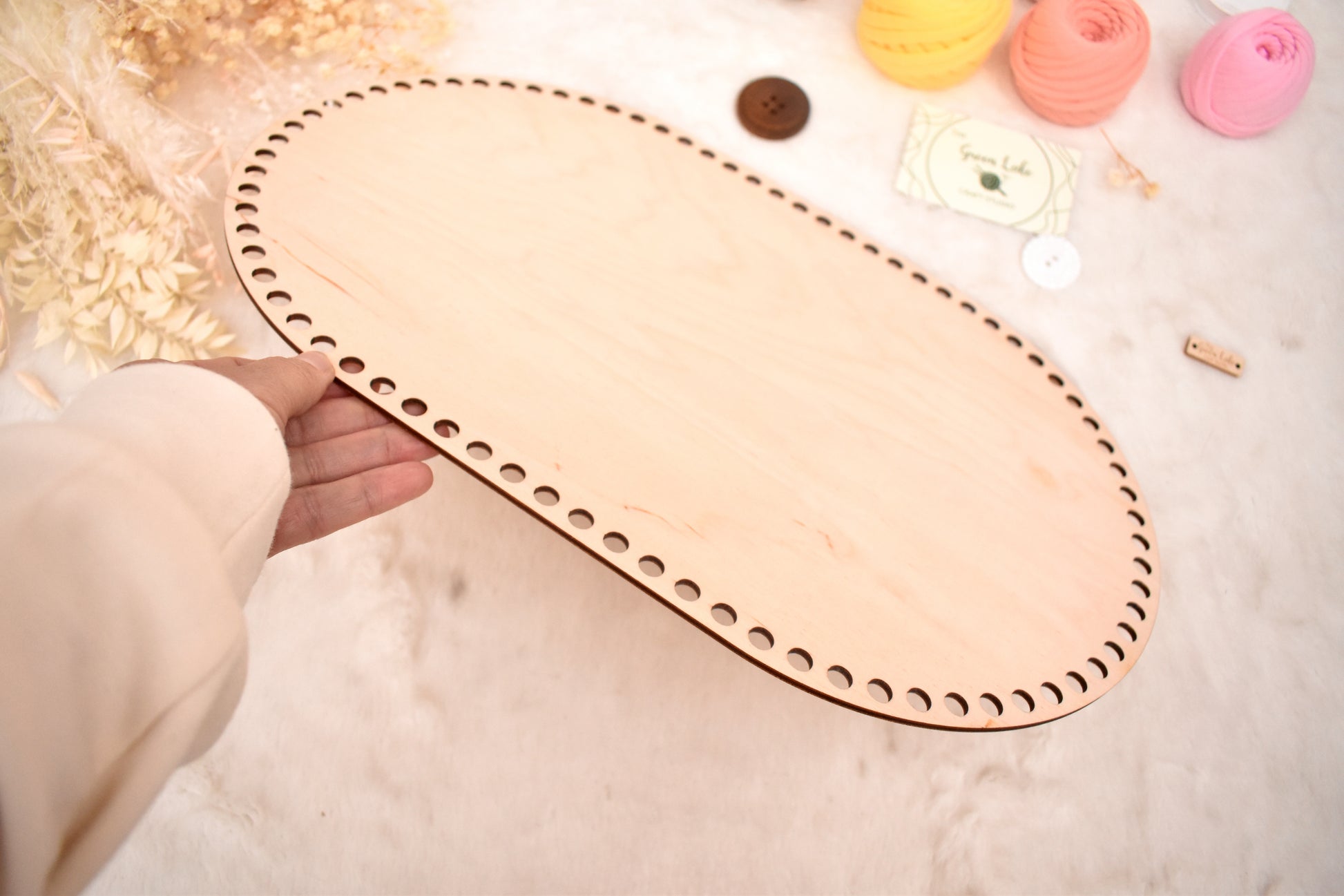 Large 40x25cm oval wooden base with 8mm holes for crochet, coiled or Macrame basket