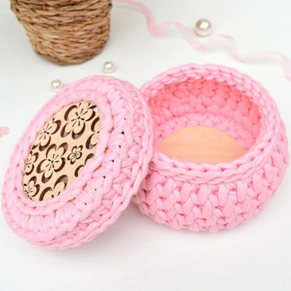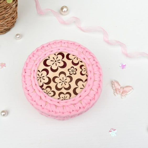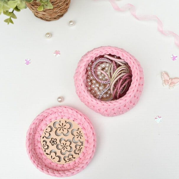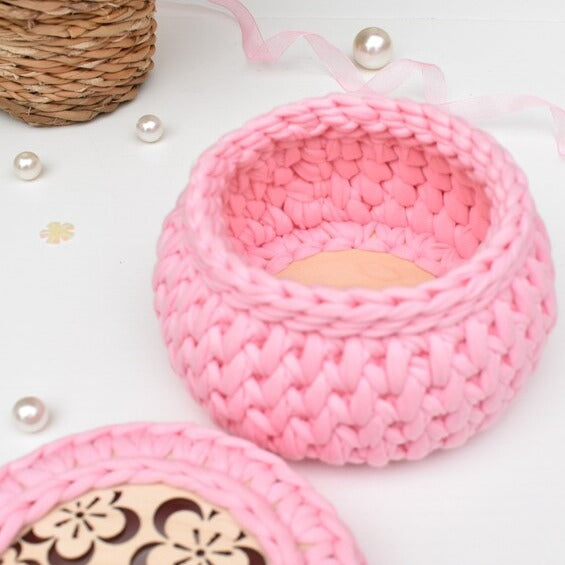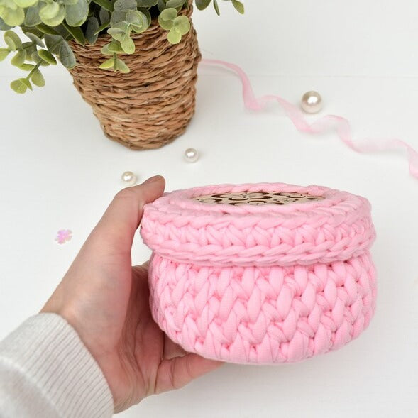 Hand crocheted basket with lid - perfect for jewellery, cosmetics and other small bits 'n' bobs!