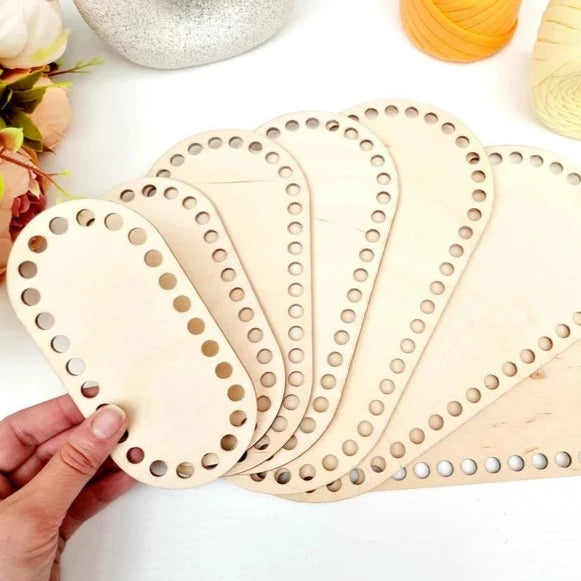 Mid-sized Rounded Rectangular wooden bases in a variety of sizes to create your own Crochet Baskets!