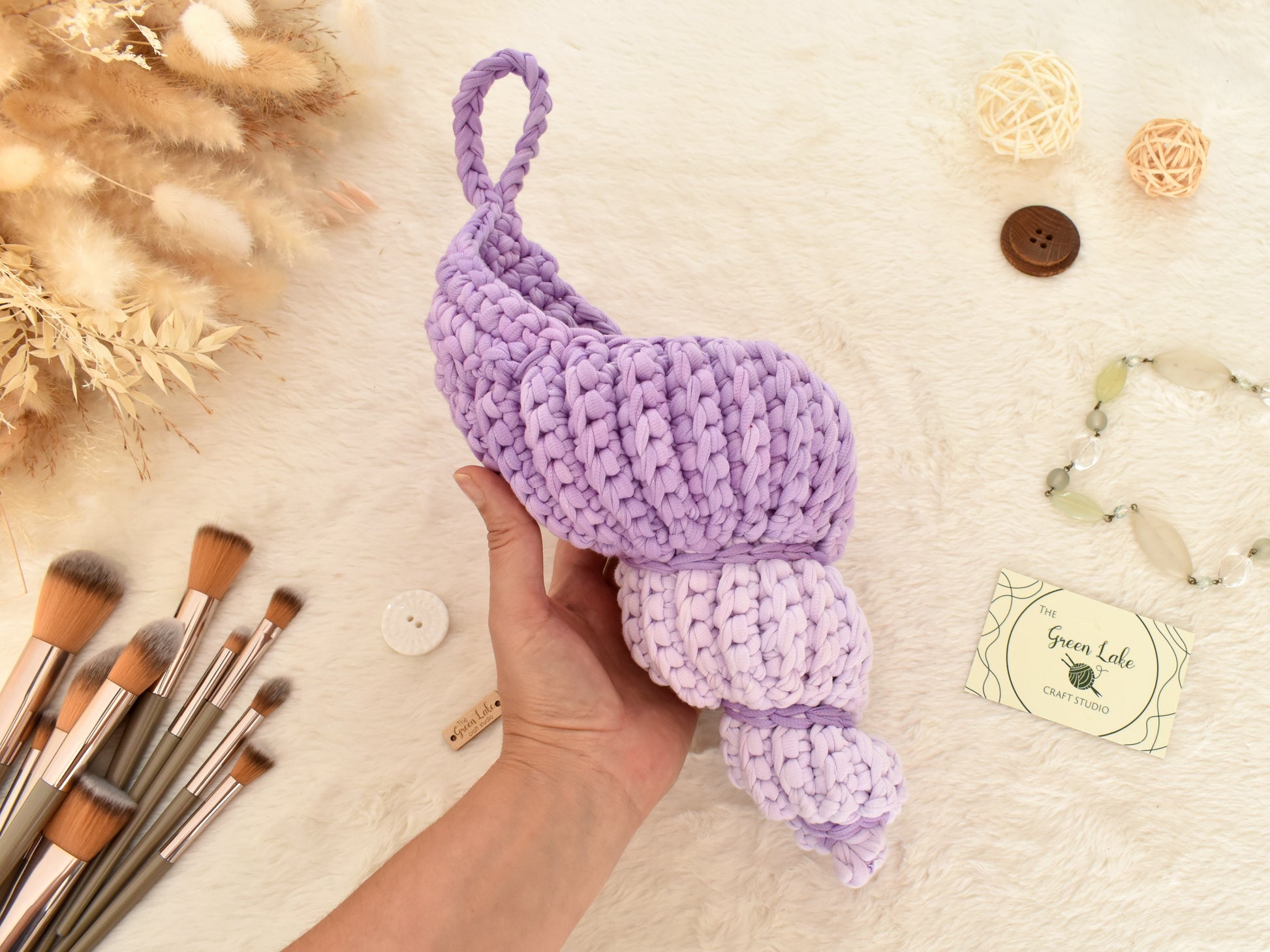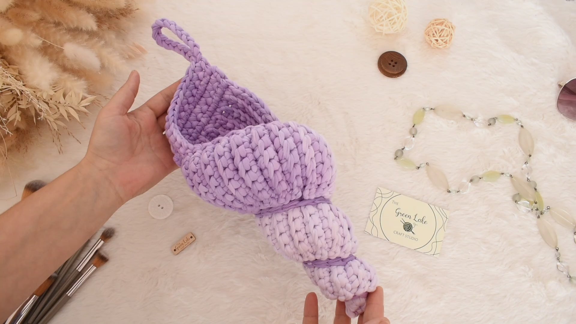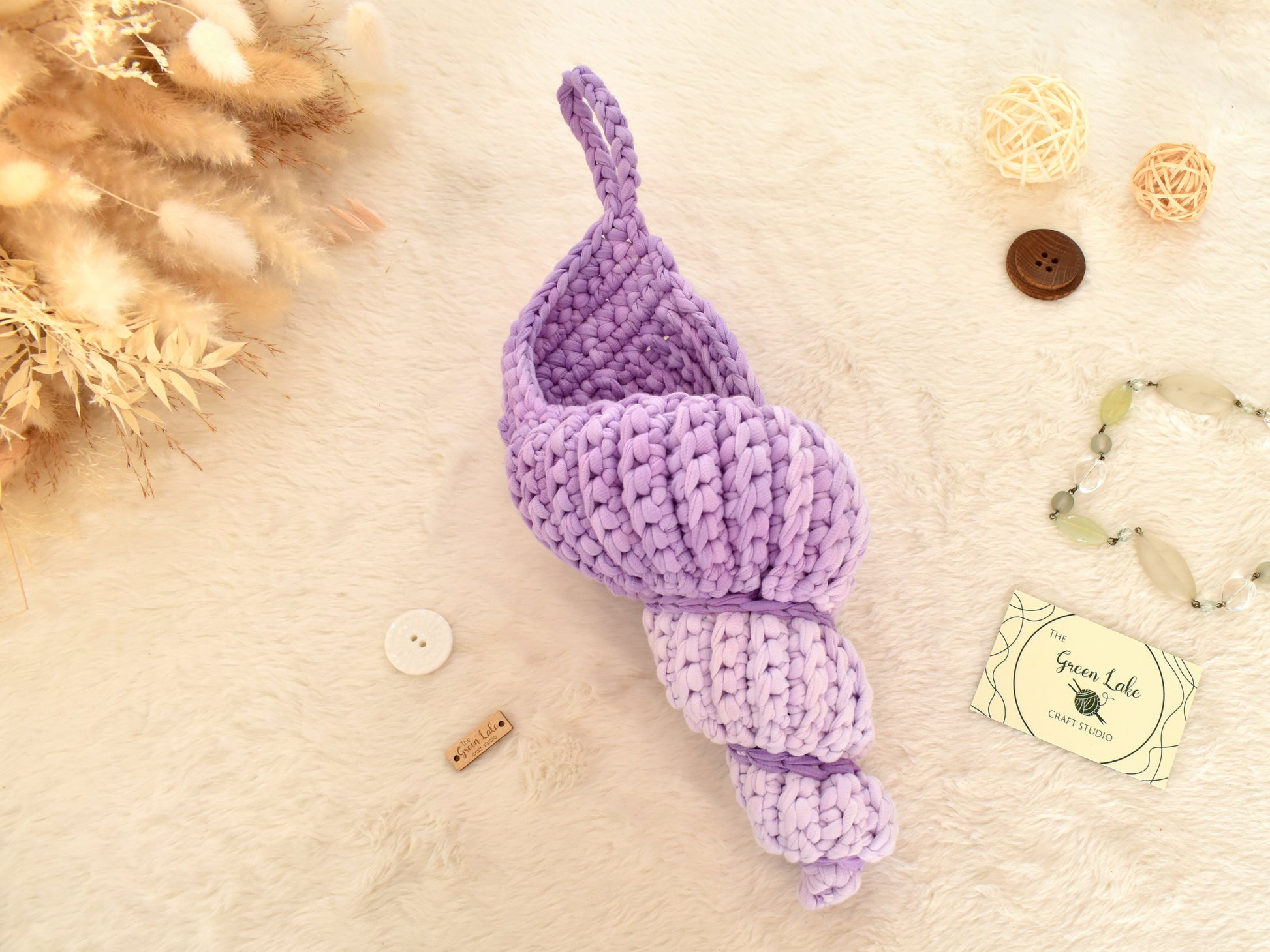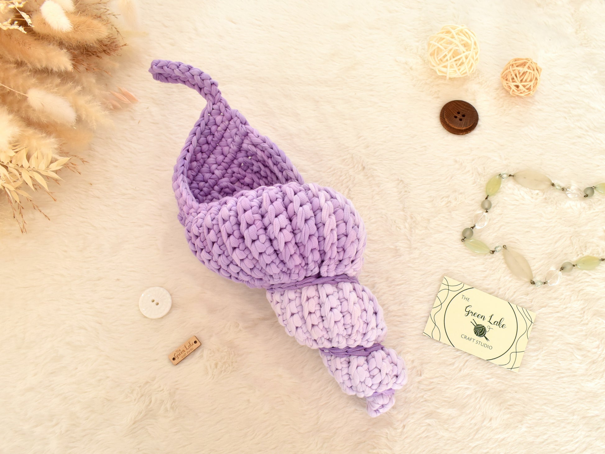 Crochet Spiral Sea Shell Basket – hand-crocheted with love using hand-dyed T-shirt yarn, this beauty is truly one of a kind.