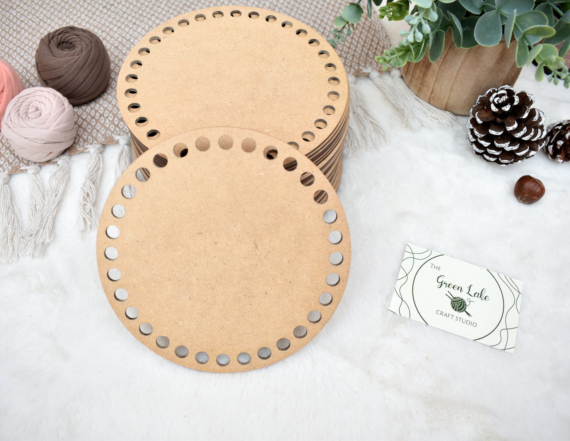 Create beautifully structured crochet baskets with our wooden base, designed with a flat edge for a snug fit against walls. This base is perfect for making wall-hanging baskets or sturdy freestanding baskets that sit neatly next to a wall.