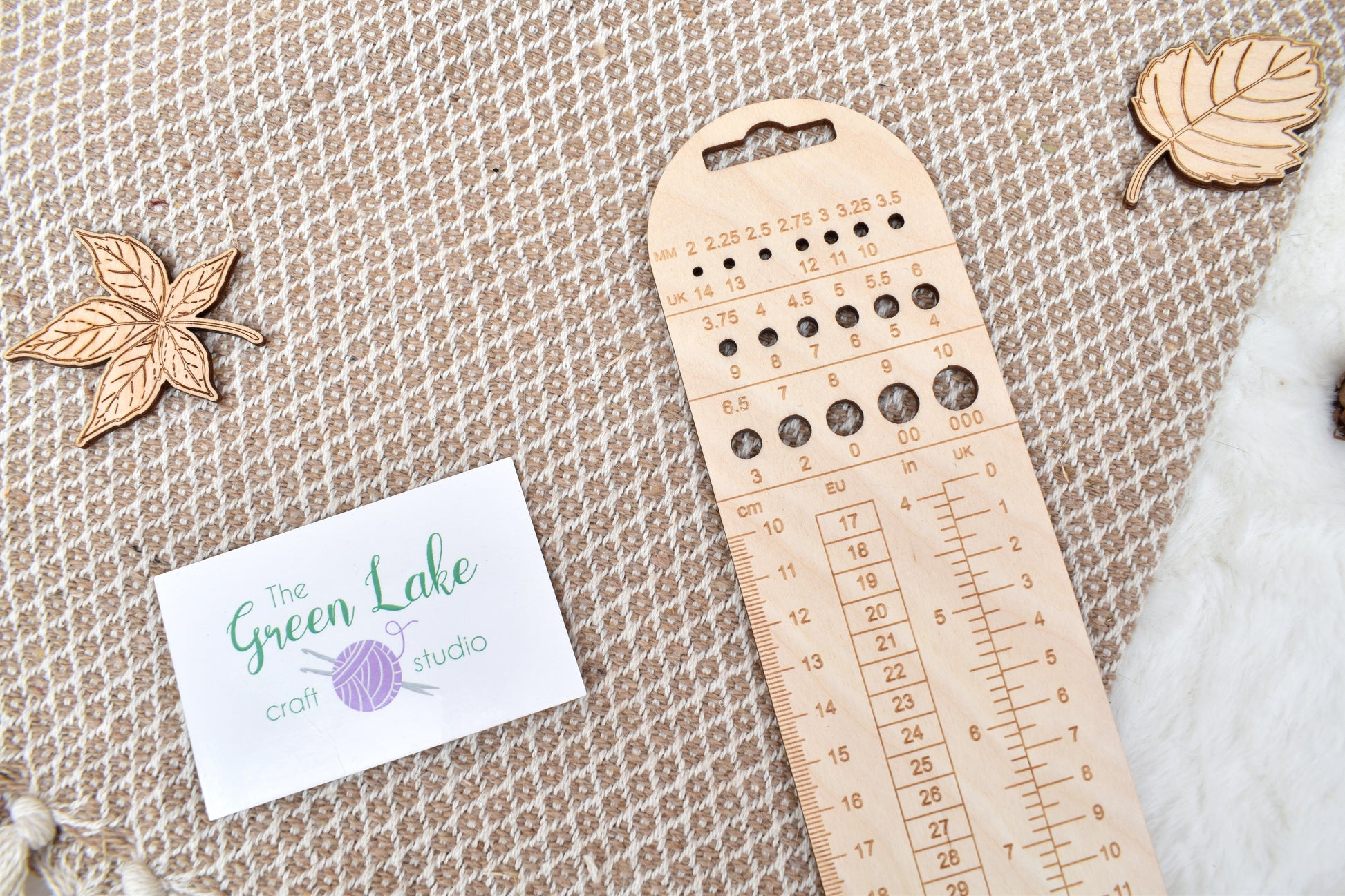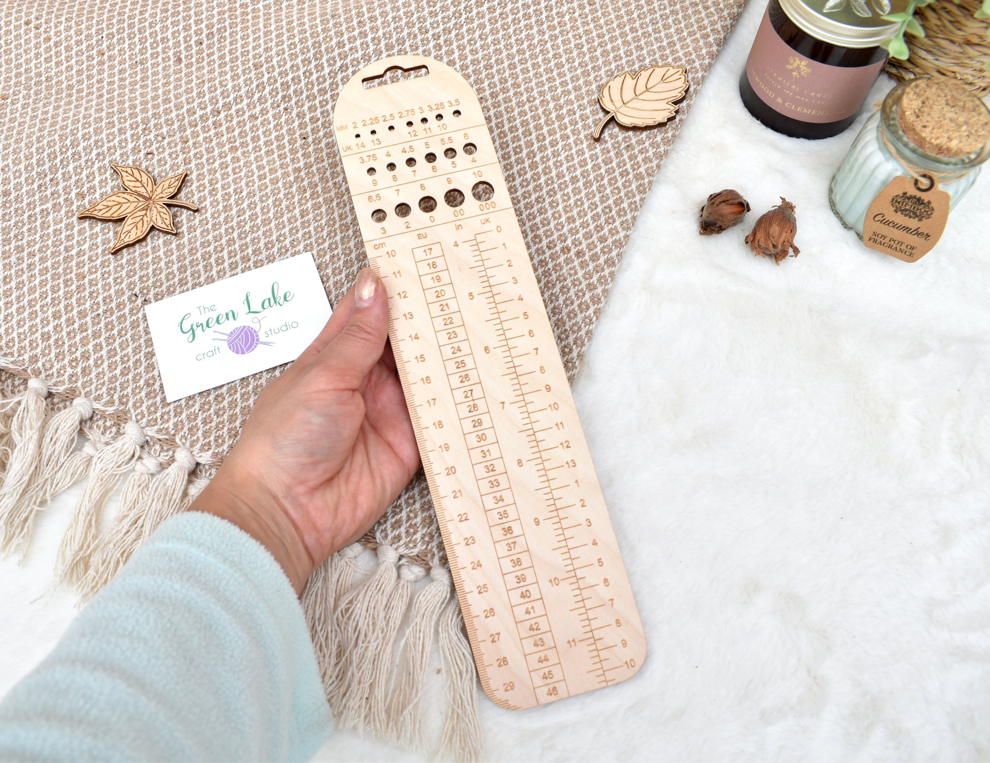 A handy wooden tool and a great gift for knitters or crocheters. Engraved on one side with centimetres, UK and EU shoe sizes. Also can be used as the knitting needle gauge.