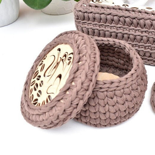 Crochet basket & Tissue box set Love Coffee Design