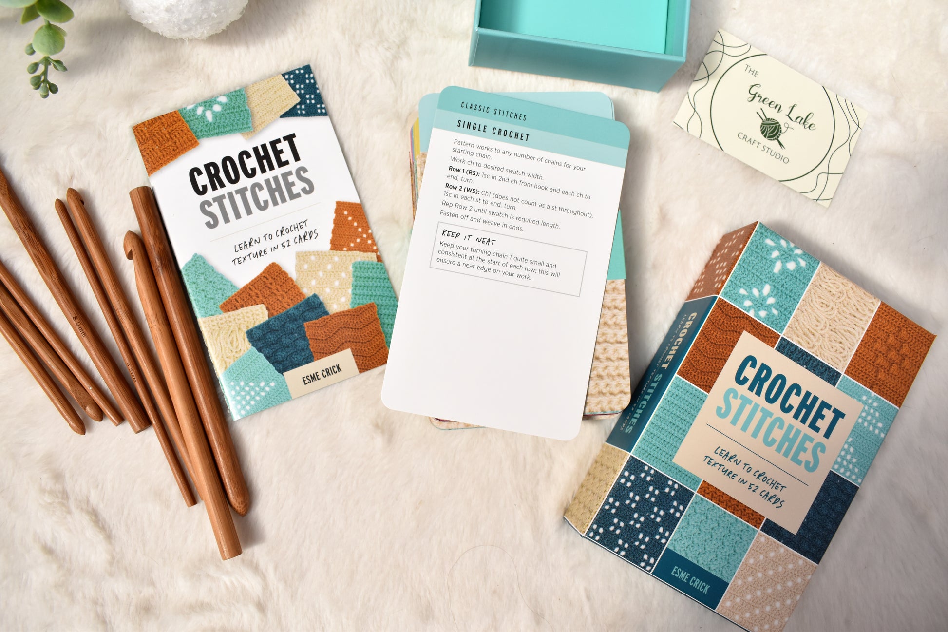 In this unique card deck you'll find step-by-step instructions for 52 simple stitches and textural stitch patterns to up your crochet game. Each card shows the finished stitch texture with clear and concise instructions on how to crochet it, attractively designed and all presented in a neat and pretty box.