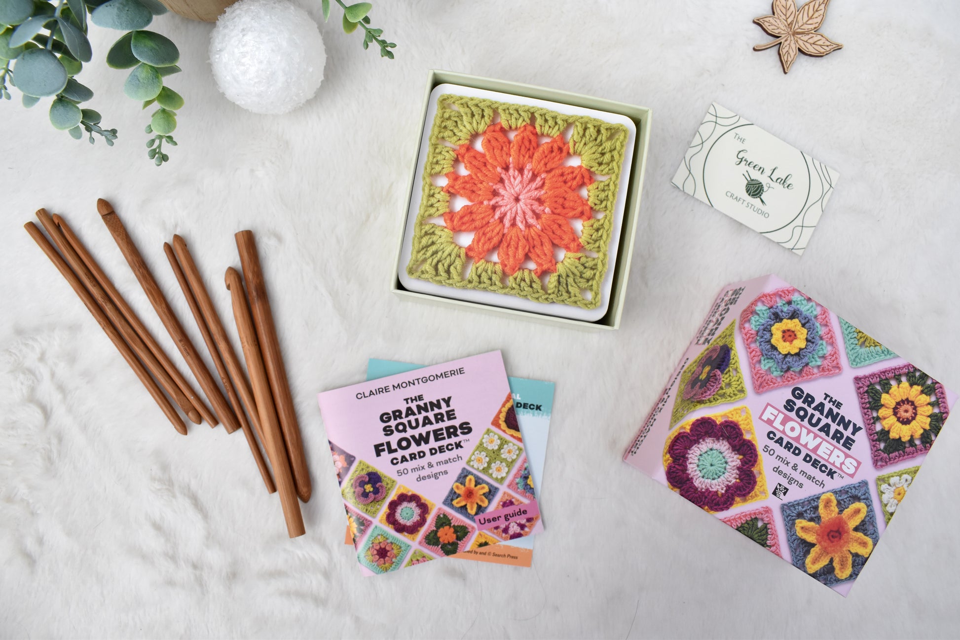 The sturdy, stylish box contains 50 colorful cards, each with a fabulous floral granny square to make, mix and match. On the front of each 10 x 10cm (4 x 4in) card is a color photograph of the finished granny square, while on the back you'll find a crochet stitch chart that shows you how to work the square, along with joining advice and any other helpful information you need. Simply lay out the cards to easily mix, match and create your own design combinations.