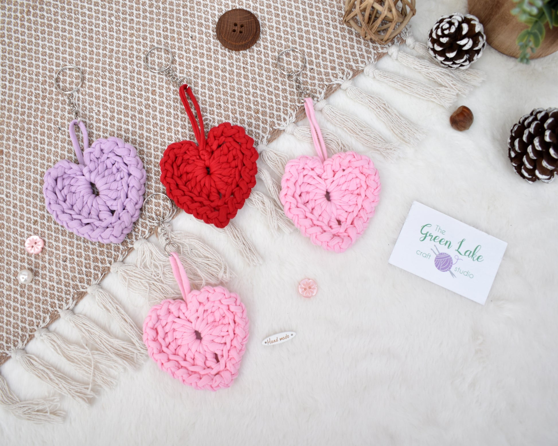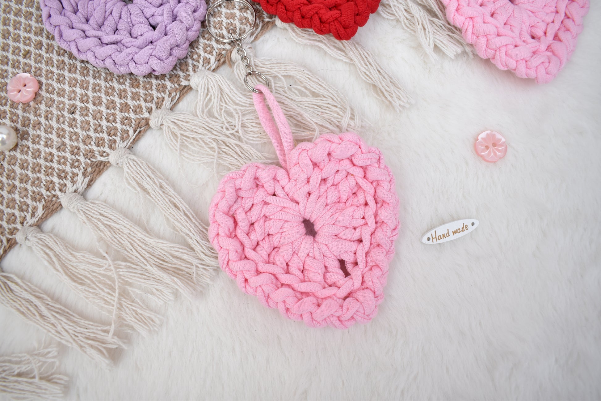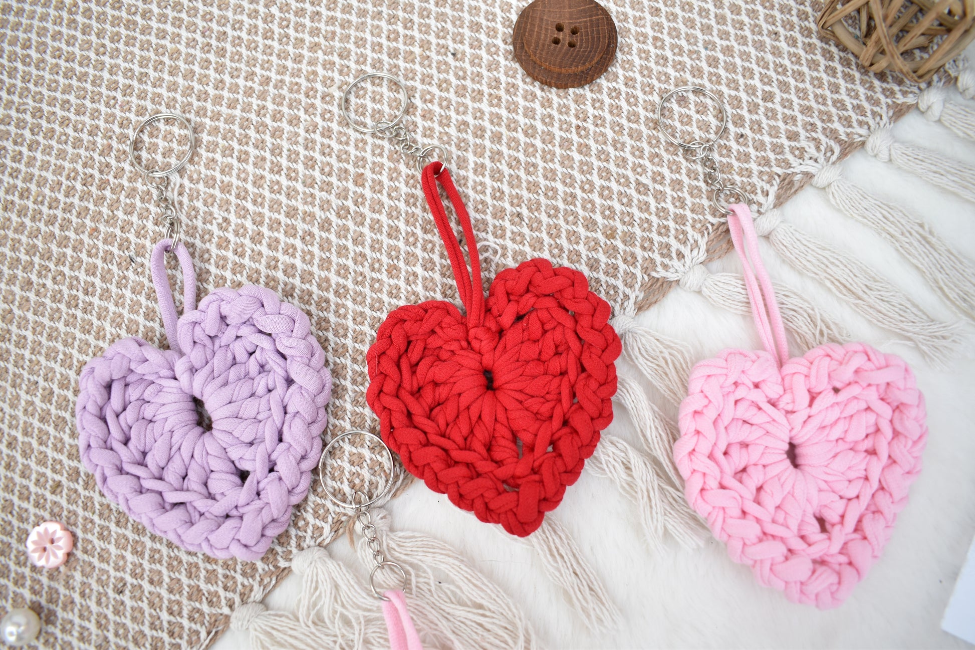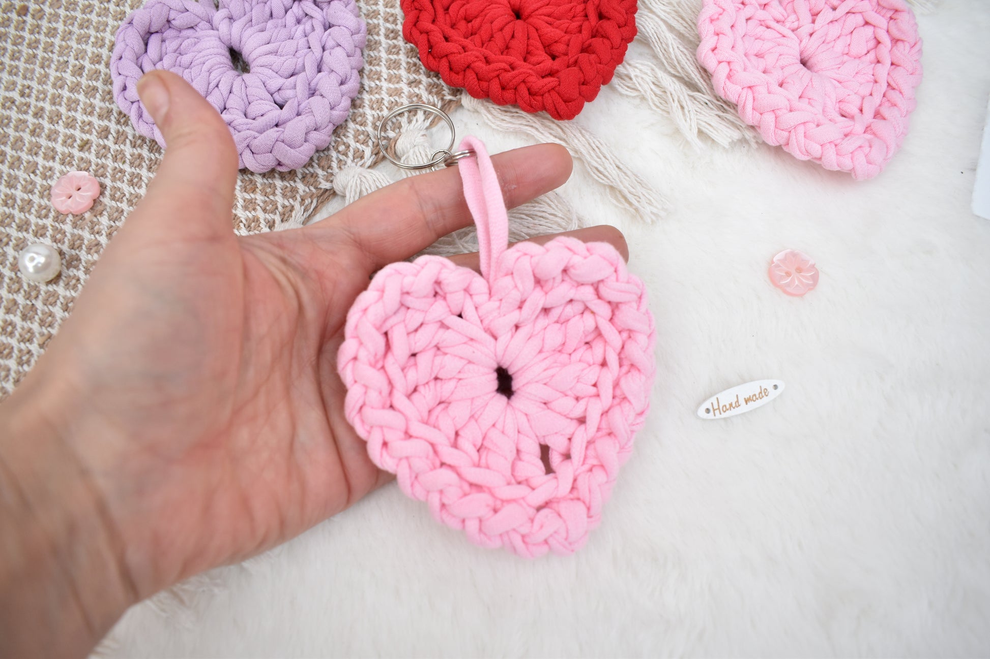 Hand crocheted heart keyring