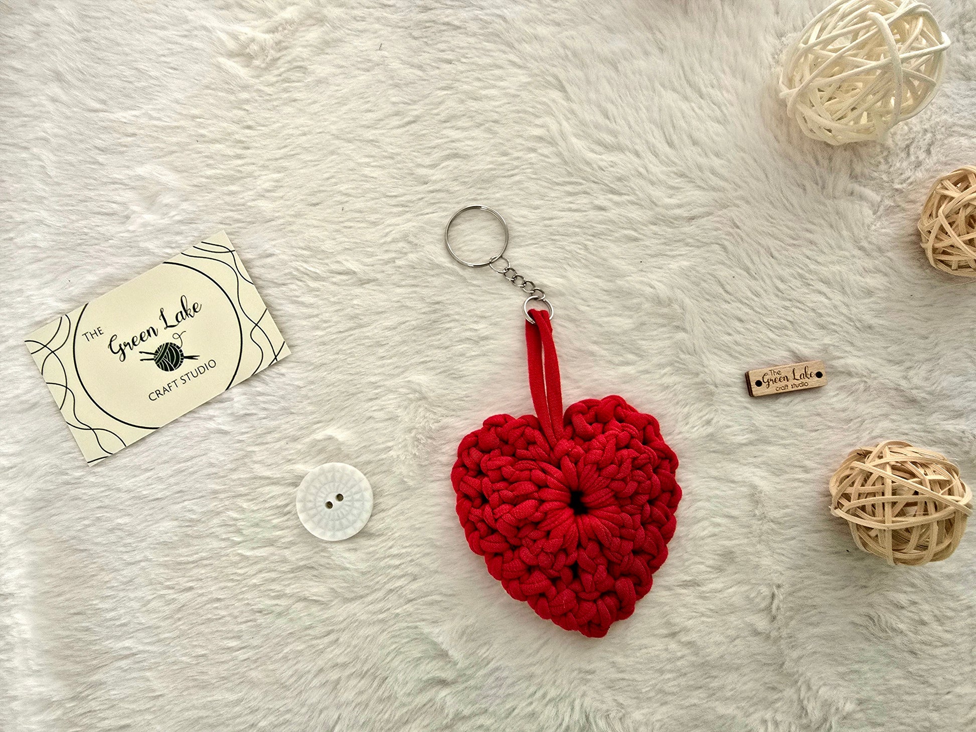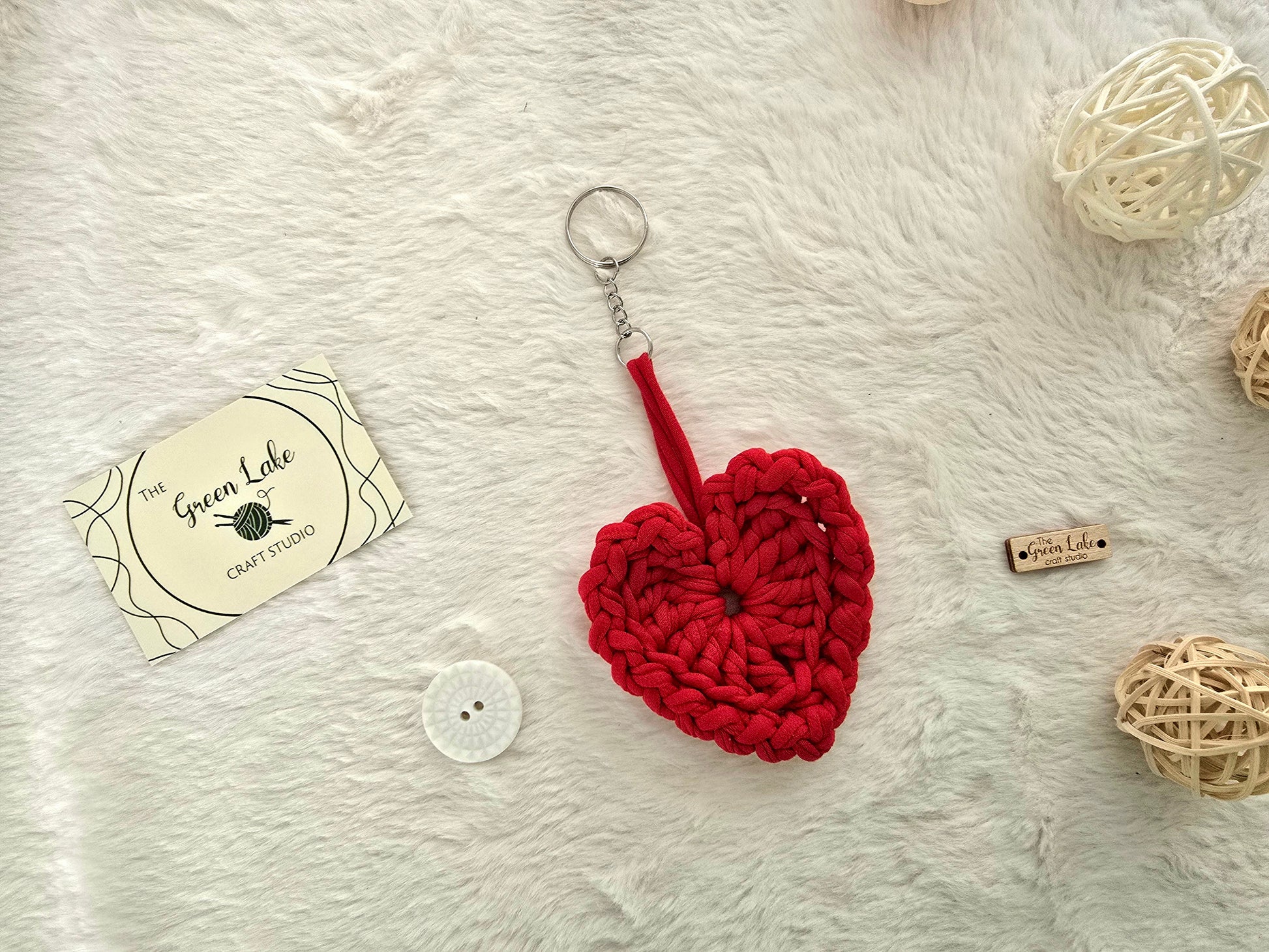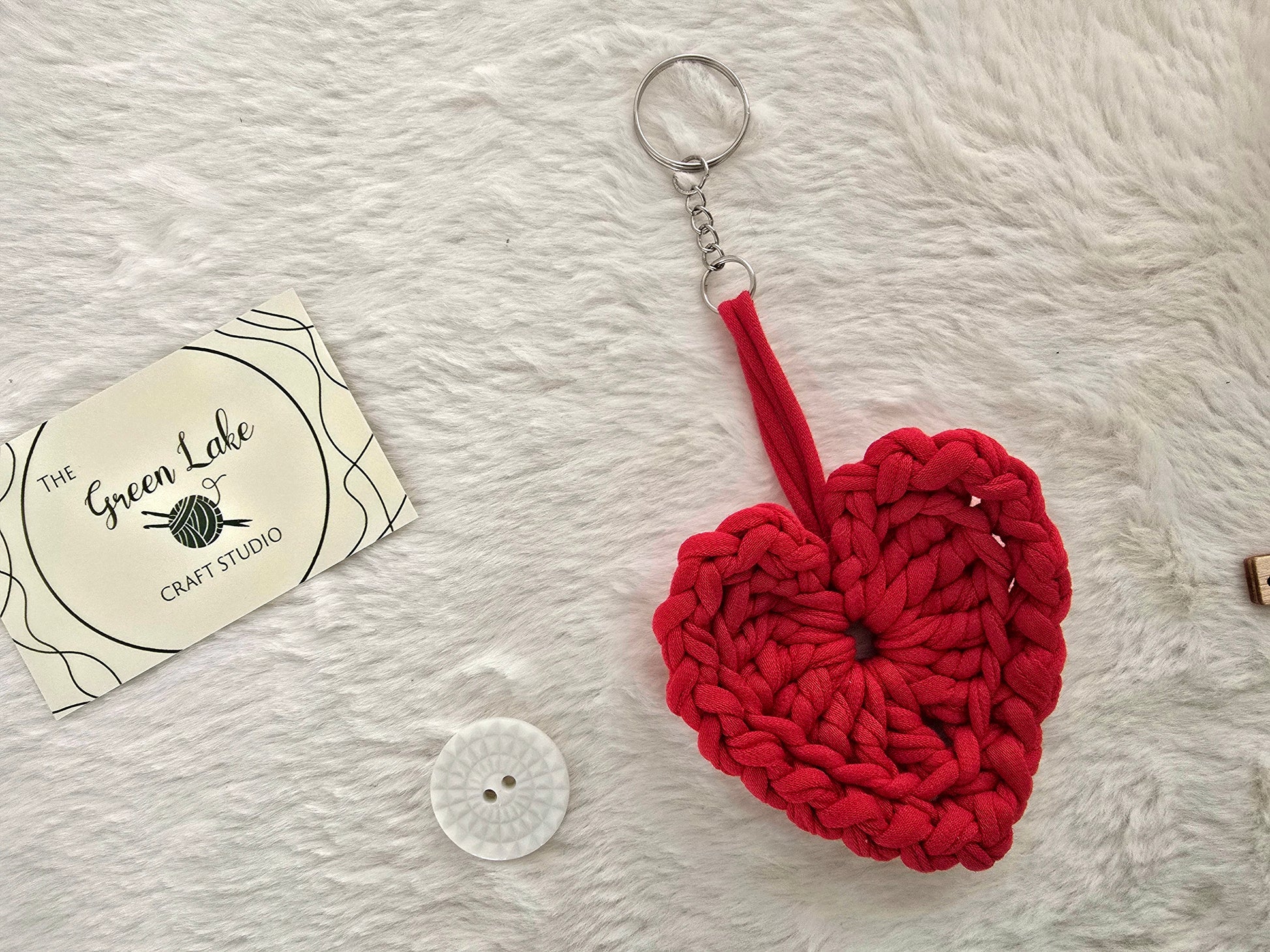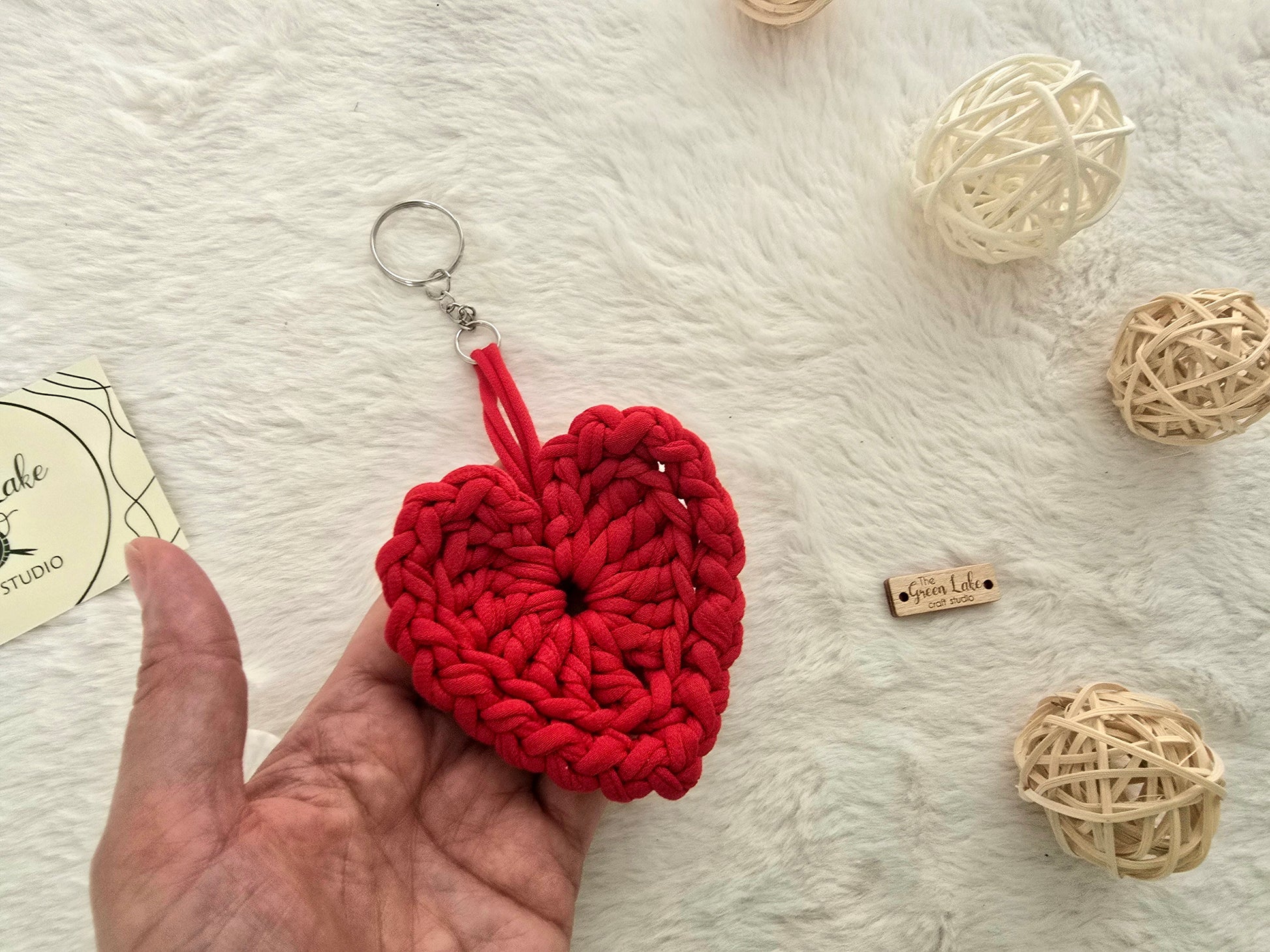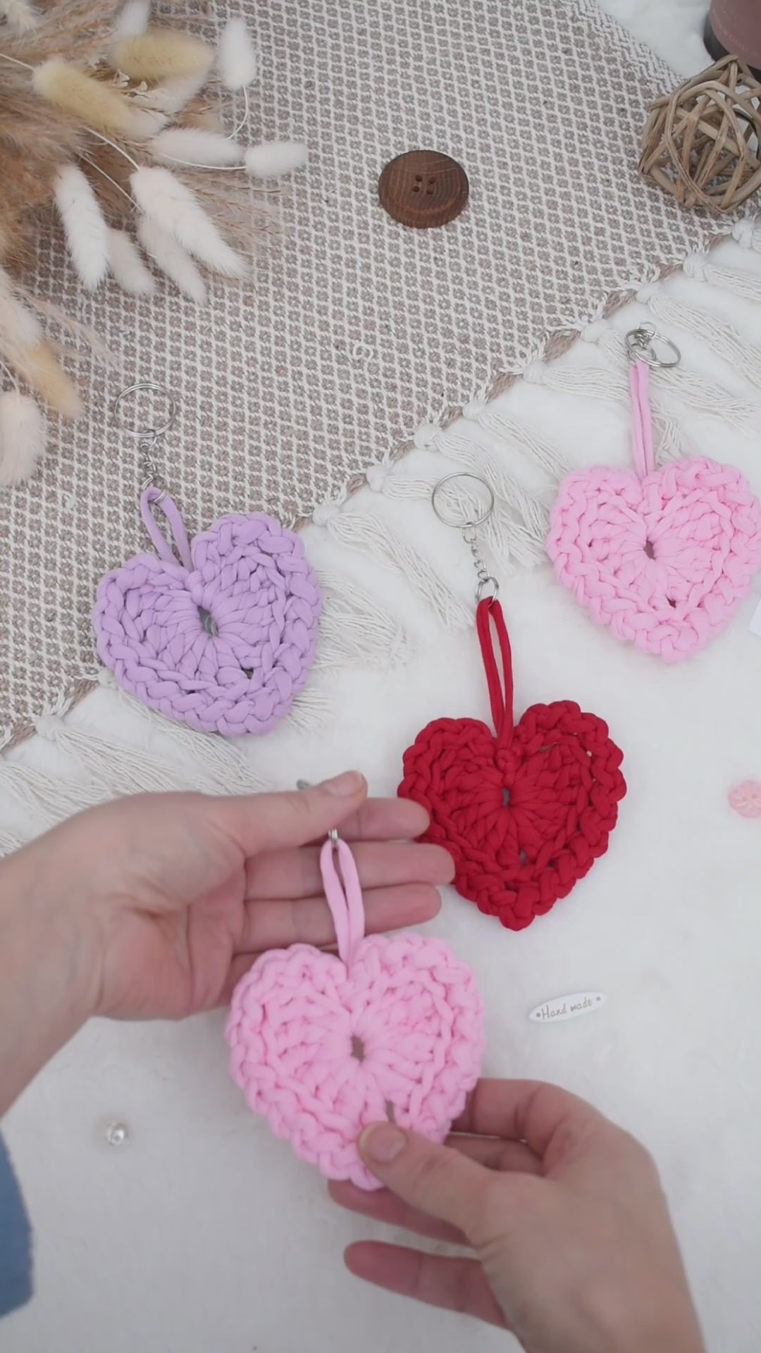 Hand crocheted heart keyring