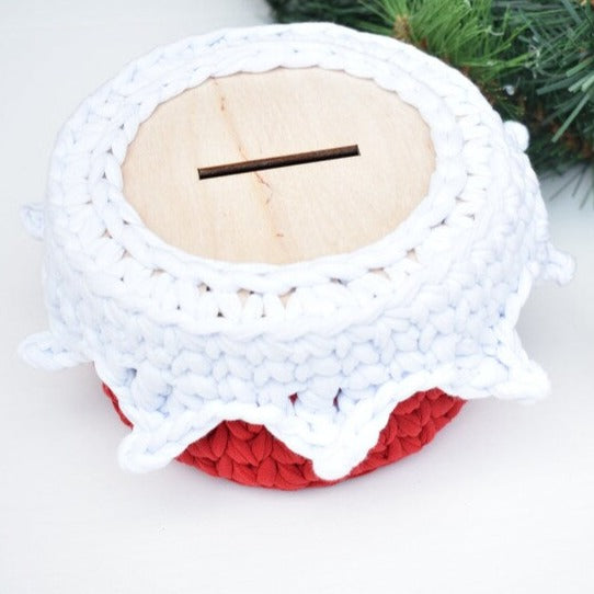 Money Box wooden top for crochet, coiled or Macrame basket