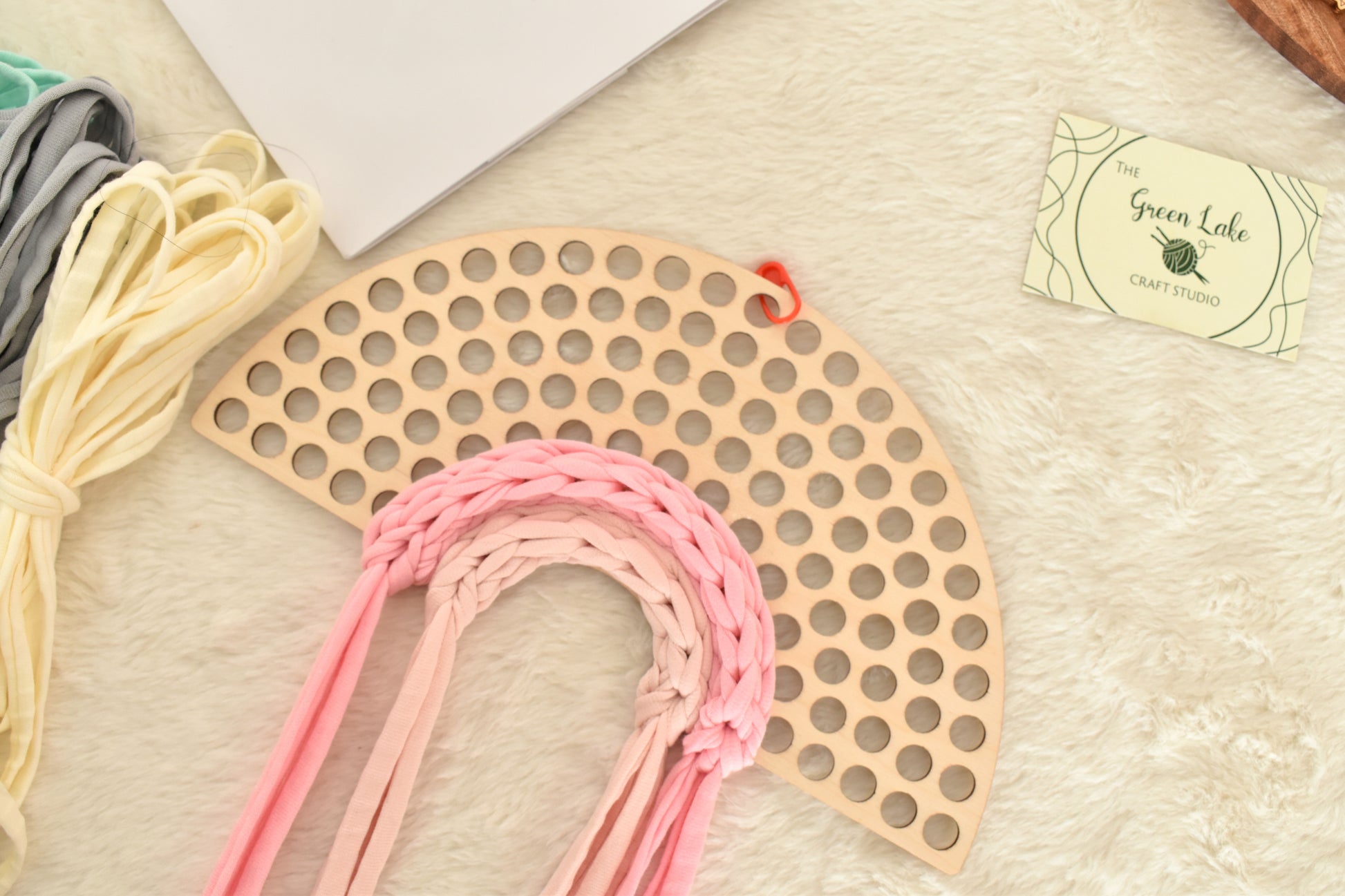 Create your very own cozy rainbow wall hanging with this fun and easy Rainbow Crochet Kit! Designed especially for beginners, this kit includes a unique wooden base and soft t-shirt yarn to help you crochet a beautiful rainbow in just about one hour.