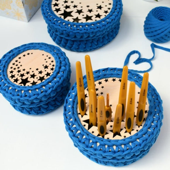 Wooden bases not only speed up your crochet but save yarn as well, so you can create even more baskets! The different base sizes let you create beautiful basket sets. So useful to store cosmetics, jewellery, or any bits 'n' bobs.