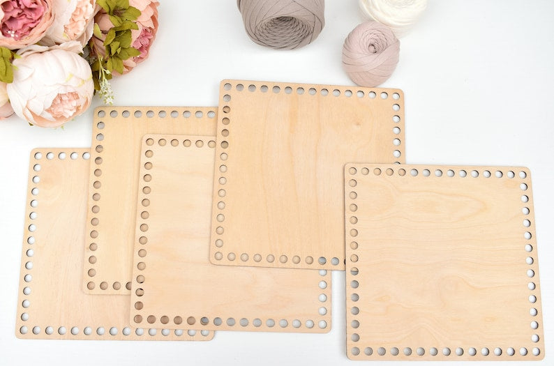 Square Wooden Bases for crochet, coiled or Macrame basket