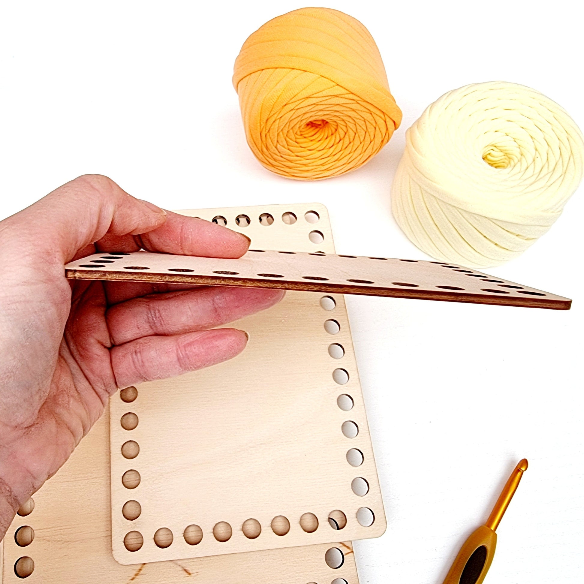 Designed for ease of use, they work seamlessly with different types of yarn, including T-shirt yarn. If using T-shirt yarn, remember to increase the stitches in the corners (3 stitches) for a smooth and even shape.